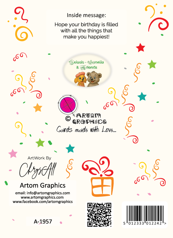 Κάθε ευχετήρια κάρτα είναι συσκευασμένη με χρωματιστό φάκελο και προστατευτικό διαφανές κάλυμμα.
