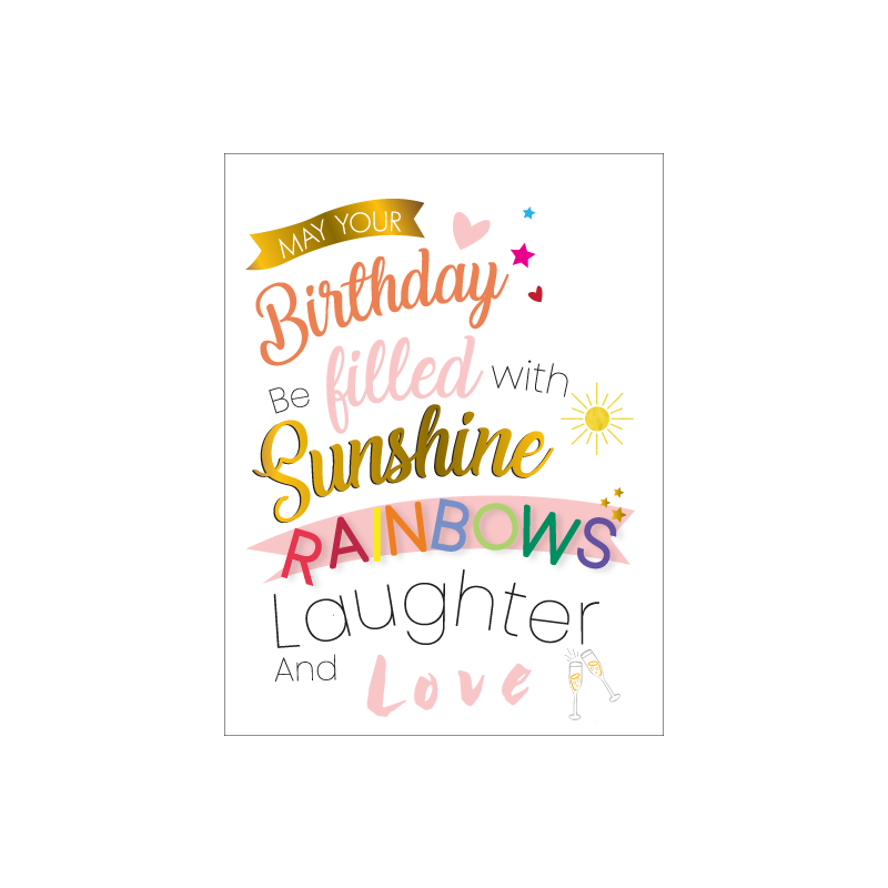 Μπροστινό μήνυμα: MAY YOUR Birthday Be filled with Sunshine RAINBOWS Laughter And Love