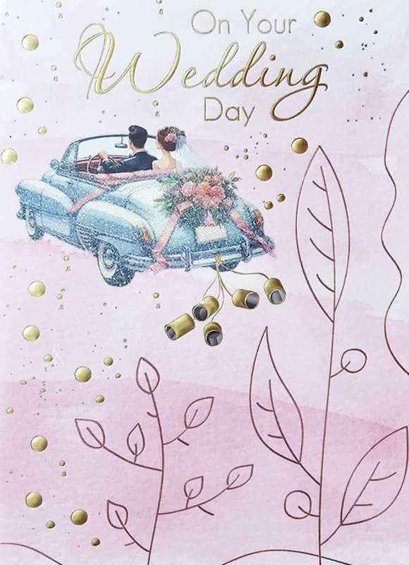 Μήνυμα μέσα στην κάρτα: Congratulations on your wedding day! Wishing you both all the happiness in the world!
